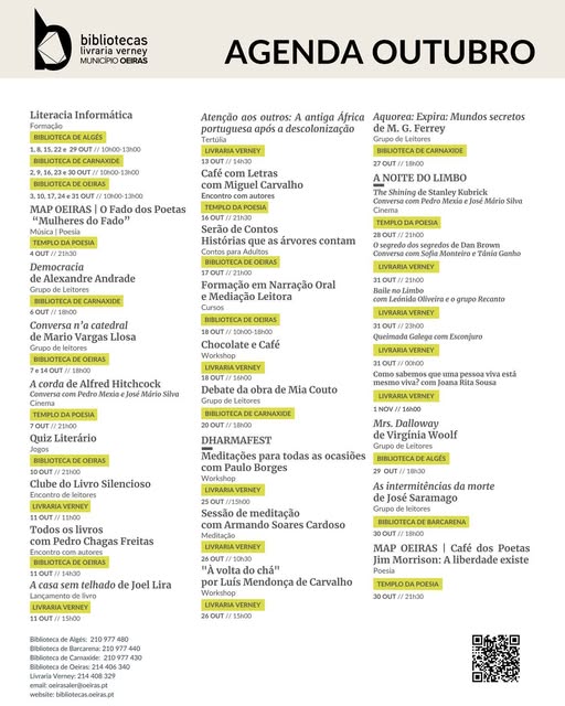 📚✨ AGENDA DAS BIBLIOTECAS DE OEIRAS | OUTUBRO 2025 ✨📚O mês de outubro...