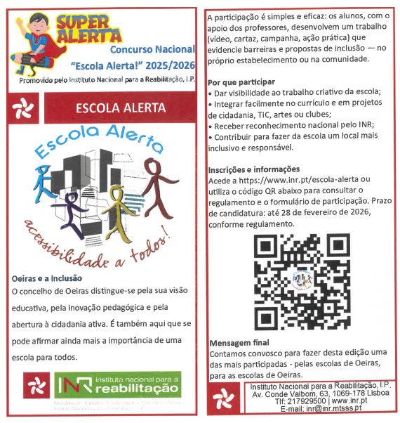 Está aberto o Concurso “Escola Alerta!” 2025/2026, uma iniciativa do INR dirigida à Educação Pré-Esc... ver mais