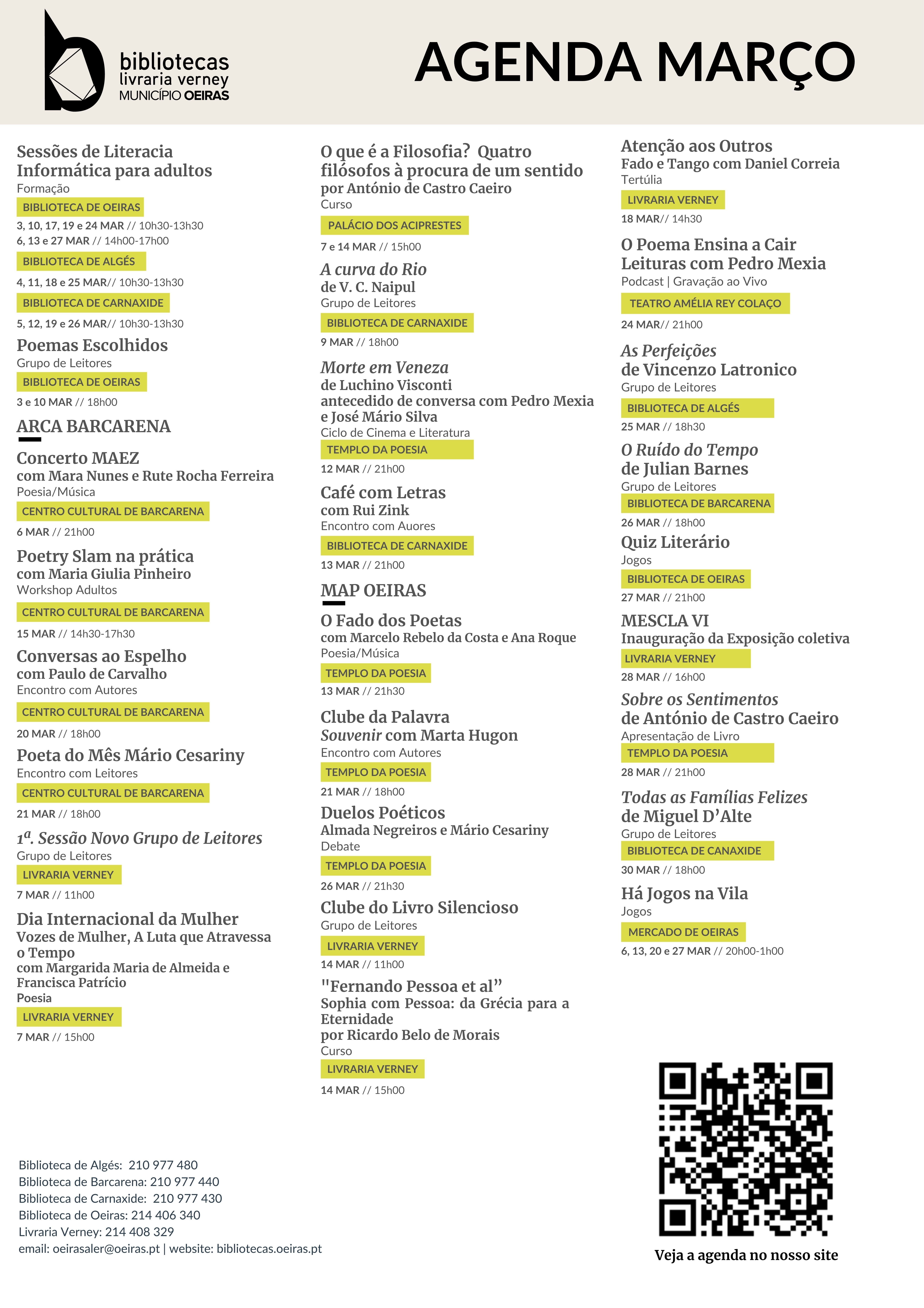 AGENDA DAS BIBLIOTECAS DE OEIRAS | MARÇO 2026 ✨📚O mês de março chega repleto...